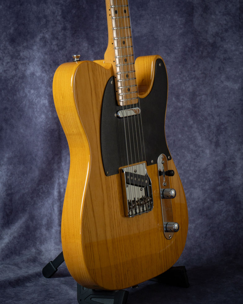 ボディには2ピースのアッシュ材、ネックには1ピースメイプルを採用。アッシュならではのレンジの広さと抜けの良いサウンド、メイプルネックによる明るく力強いアタックが組み合わさり、テレキャスターらしい歯切れの良いトーンを生み出します。
